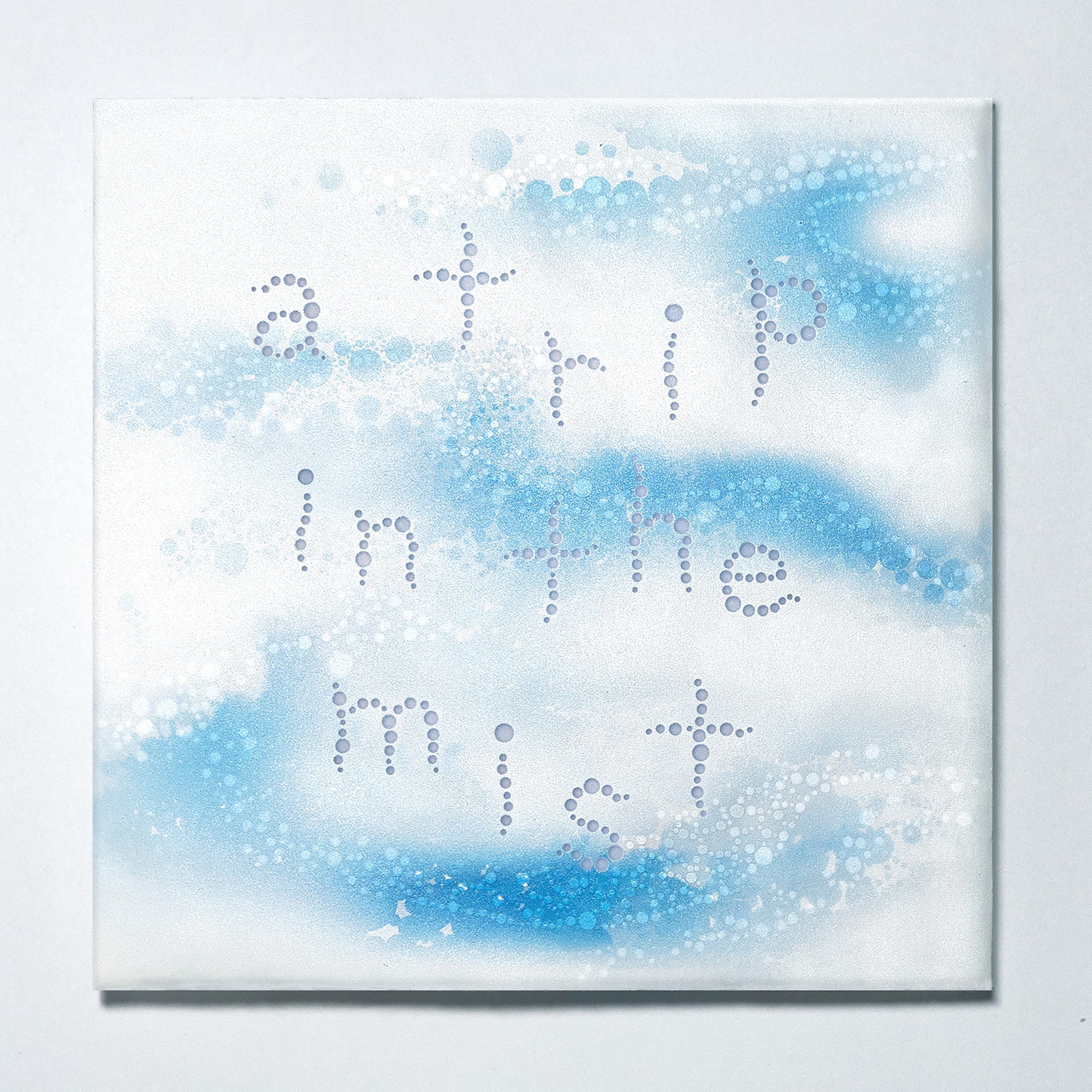 この紙の光に透けるような淡いイメージから、自粛期間中行けずもやがかかった旅先の風景を点描で描き、